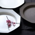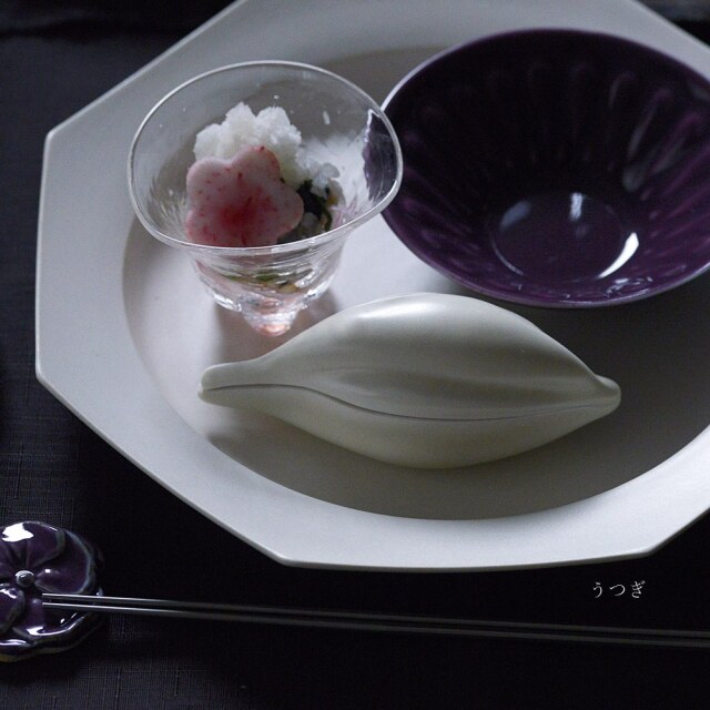 藤田千絵子 リム八角プレート 今回のご出品の中で一番のオススメがこのプレート!3種類(うつぎ、うつぎつや、brown)入荷しています。うつぎはマットな白色で艶がありませんが、艶のあるうつぎ(つや)もソースなどのシミを弾くのでどんなお料理も怖いものナシです。brownも色がシックなベージュ系の茶なので、明るい色味の食材が映えますよ。。どれも深さがあるから、たっぷり盛りつけられるのが嬉しいお皿です。パスタ、カレー、炒め物、ソテーなどの洋食に♪