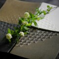 橋本忍 麻葉紋角皿 麻葉は、日本の伝統的な紋様のひとつ。小さな子どもがすくすくと元気に育つよう願いを込めて生まれたといわれています。この角皿には、繊細な麻葉紋が斜めにデザインされ、モダンな雰囲気が漂います。粉引き・赤鋼・錆黒の3色展開で、お茶会などにも人気の一枚です。