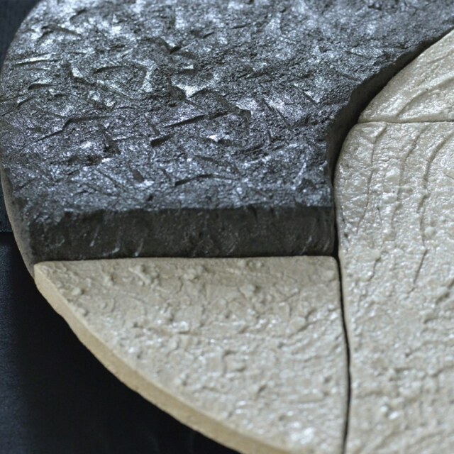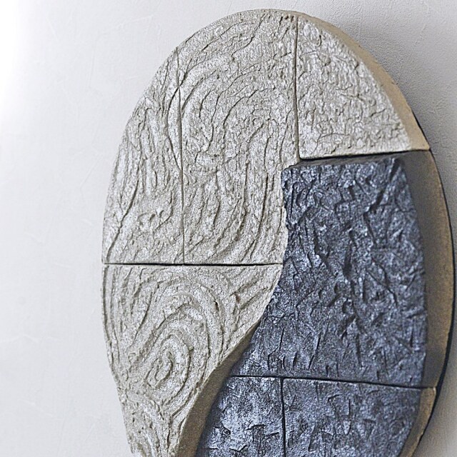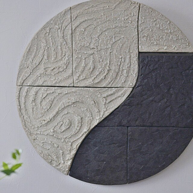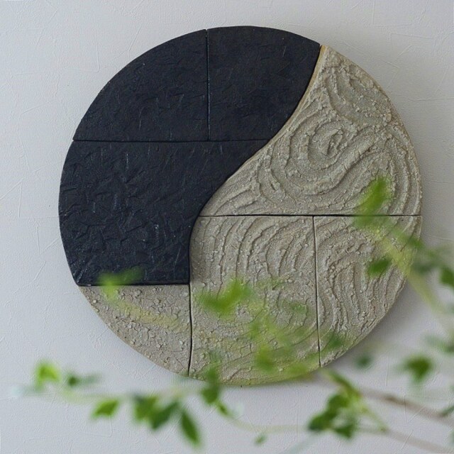原康広(弥兆窯) 陶製レリーフ(壁面用オブジェ)1月に日本橋でレリーフ展を催されていた原さん。10点ある作品の中で、このモノトーンのレリーフがお気に入りになり、ついに我が家にもお迎えいたしました!殺風景だった空間がモダンなギャラリーのようになり、テーブルの撮影するのが一段と楽しくなりました!背景にお洒落なレリーフが有るだけでこんなにも雰囲気が変わるんですね。嬉しい驚きです♪スペインで陶芸を学ばれた原さんの作品はやっぱり大きくなればなるほどカッコ良さがマシマシです。他にも沢山ご紹介したいビッグ作品があるのでいつか佐賀工房ツアーも企画しなくては^^このレリーフ10kg近くありますが裏面には太いワイヤーがしっかり付いてるので、DIYは壁面にビス(またはフック)を(インパクトドライバーなどで)取り付けるだけでOK!勿論女性一人で設置可能です。ビスを留める位置は壁の内側に木材が通っていることを確認した上でお好きな場所に取り付けてみてください。