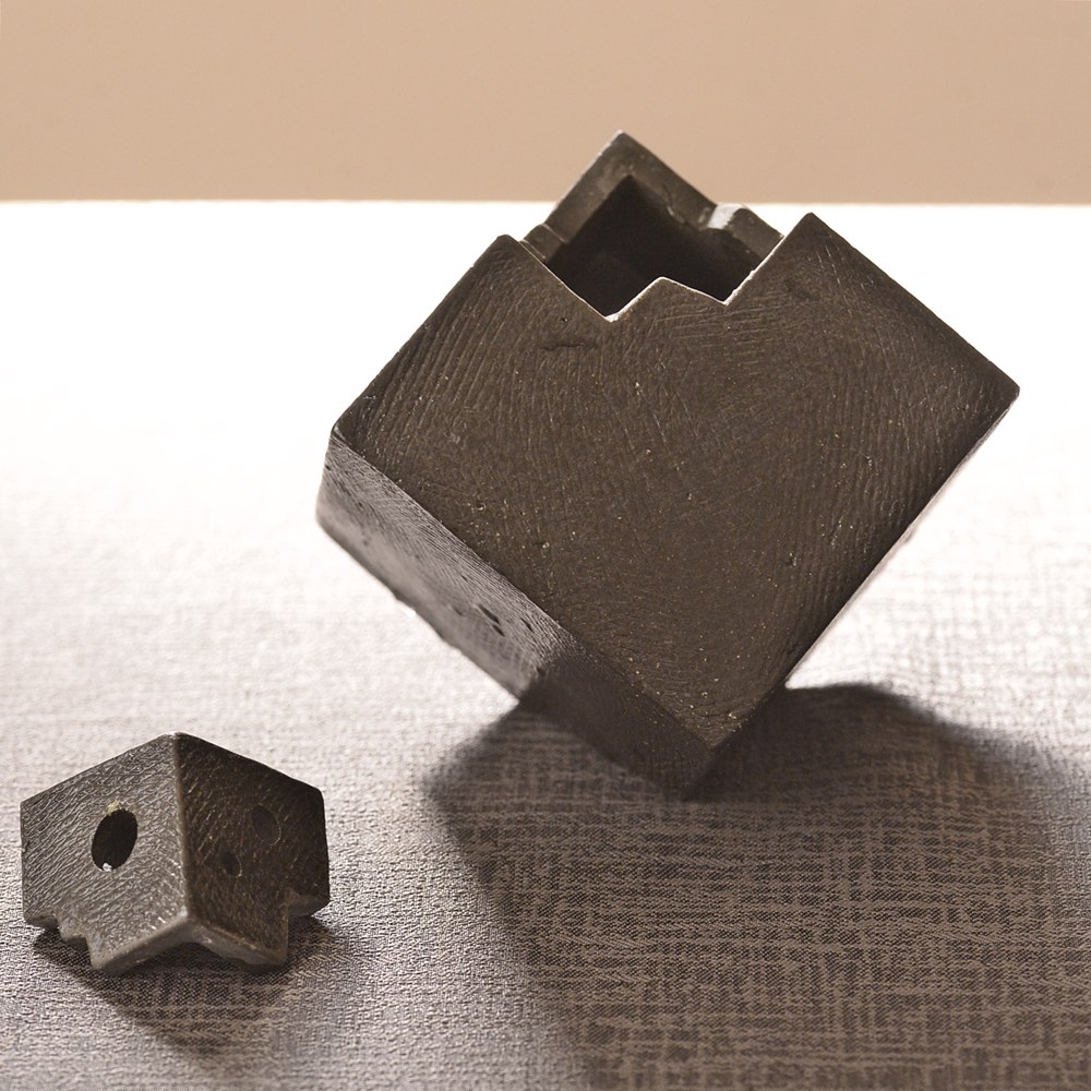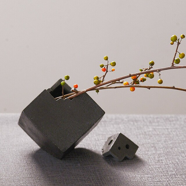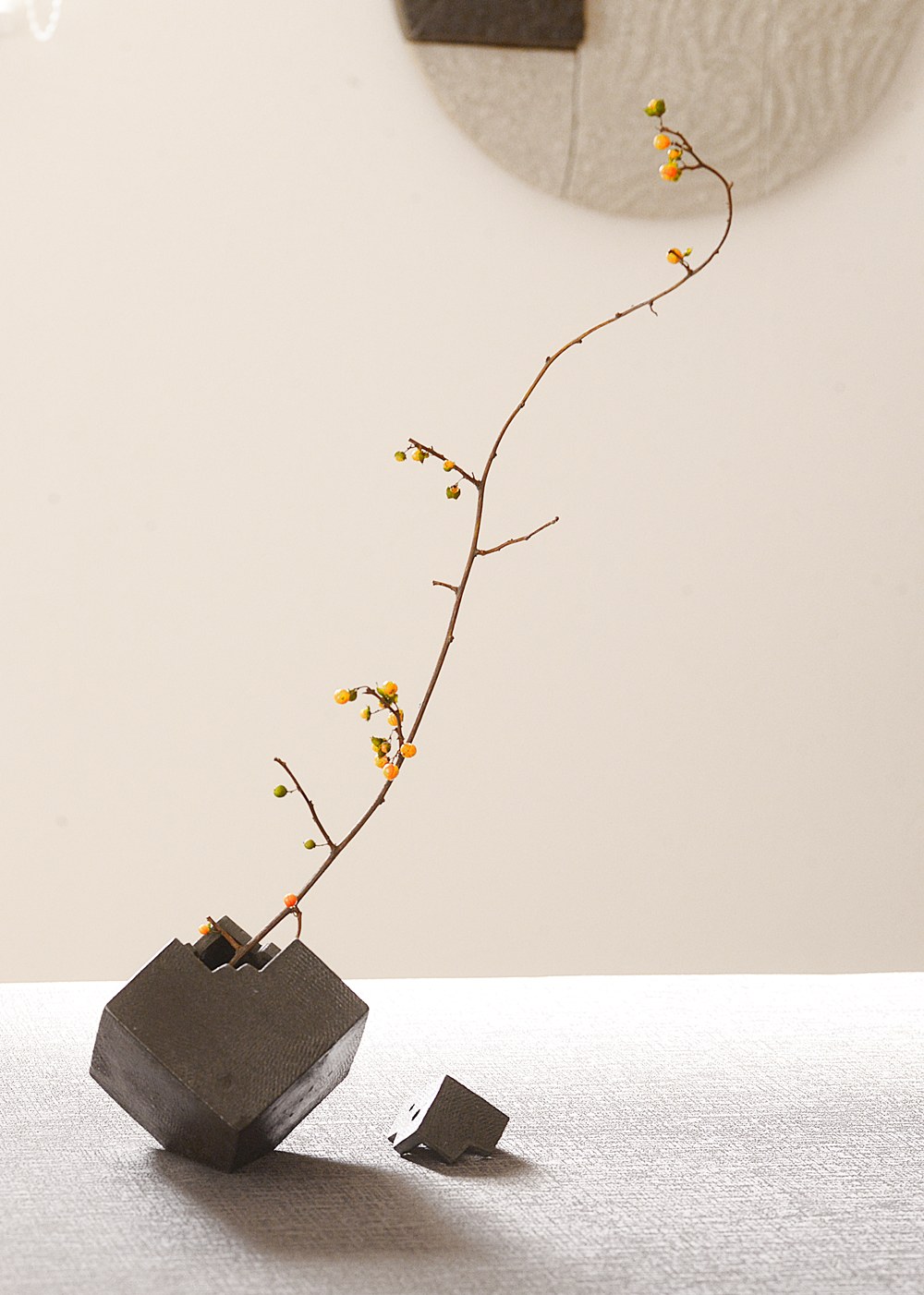 原康広(弥兆窯) 花器Cube 先日、北青山のギャラリーで開催された個展で、思わず目に飛び込んできた花器です。以前、六本木の展示会で拝見した際に「Cubeが一番人気なんです」とおっしゃっていたのを思い出しました。正直、この形の花器に花を活けたことがなかったので「私に活けられるかな」と不安もありました。ですが、実際にやってみるととても簡単で驚きました。本当は〈大・中・小〉と3サイズあったのですが、テーブルでのスタイリングには中と小のサイズ感がちょうど良いと思い、この2つを連れて帰ることに。内部には花留めしやすい工夫も施されていて、原さんの作品づくりに込められた熱量を感じます。
