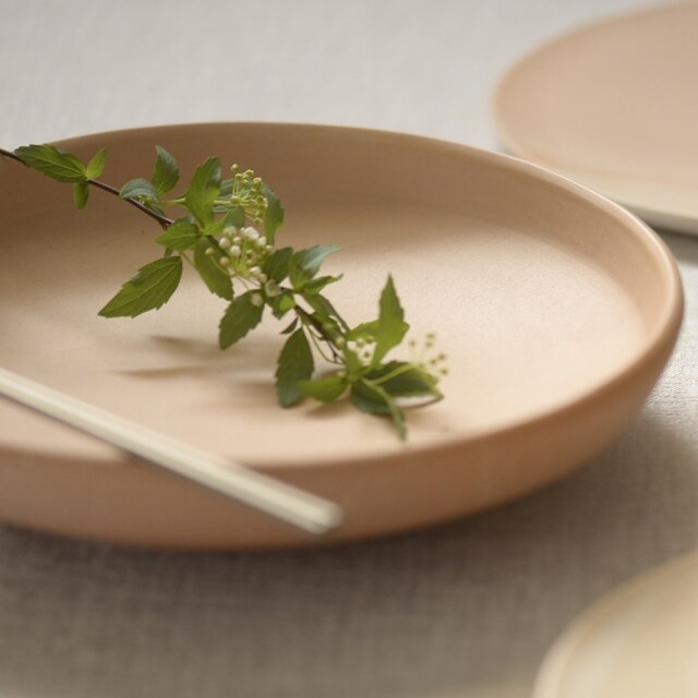 川村晃弘 浅鉢7寸 二人前の煮物やサラダにちょうど良いサイズ感の浅鉢。「暁」のお皿は、その柔らかな色合いがどんなお料理も美しく盛り映えさせてくれます。肉じゃがなどの煮物にもぴったりな一品です。