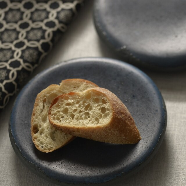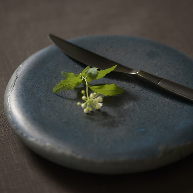 川村晃弘 中空皿 青黒 中が空洞になっているタタラ作りのお皿。厚みがありながらも驚くほど軽いのが魅力です。中央に向かって緩やかな凹みがあり、安定感のあるデザイン。焼きたてのパンやクッキーはもちろん、鮮やかな色合いの前菜を盛り付けるのにもぴったりです。あなたのお料理を引き立てる一枚として、ぜひ取り入れてみませんか?