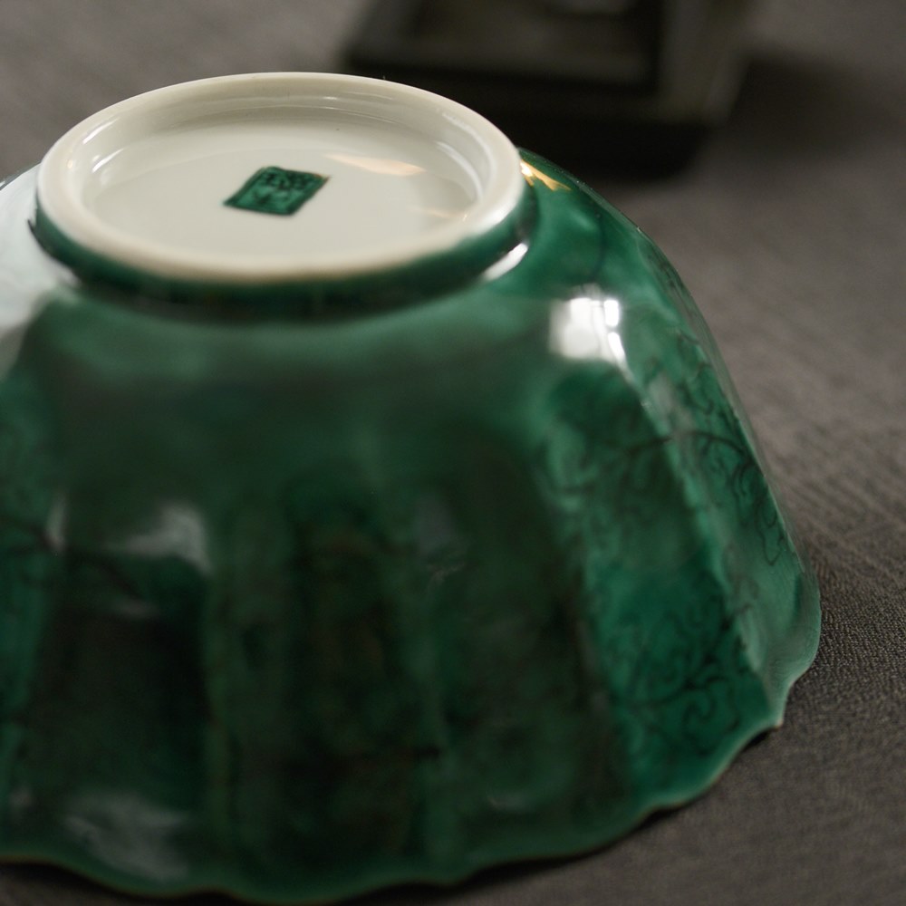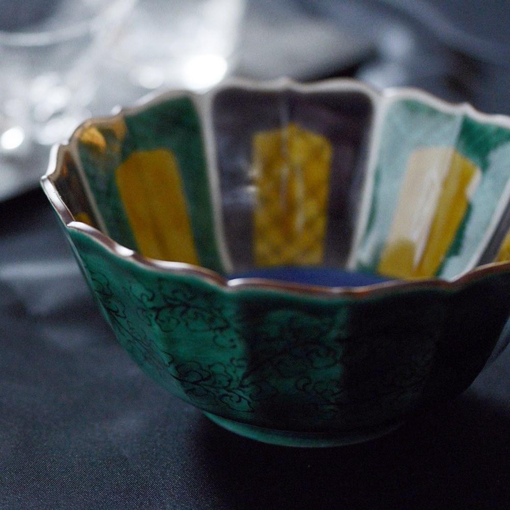 瑛生の器(九谷美陶園) 椿文様六寸深鉢 九谷焼ならではの深みのある美しさが魅力の一枚。落ち着いた色合いの椿文様は、伝統技法「吉田屋手」によるもので、職人の手描きによって丁寧に施されています。どこか懐かしさを感じさせながらも、現代の食卓にも自然と馴染むデザインです。しっかりと深さのある形状なので、サラダはもちろん、煮物や汁気のある料理、大皿料理をたっぷりと盛り付けるのにもぴったり。さらに、電子レンジ・食洗機対応という実用性の高さも嬉しいポイントです。日常使いしやすく、和洋問わずさまざまな料理に寄り添う器です。