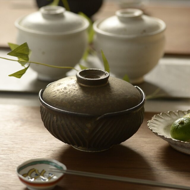 村上直子 つぼみ こどんぶり 蕾のフォルムを彷彿とさせる美しいデザインの蓋物です。以前入荷した作品より若干大き目にリニューされています。お持て成しの席で飯物や麺類をいれる器として。色のバリエーションはshiro moegi、moegi, ブロンズ、黒の4色。どれも素敵なので1つに選べない方は色違いでどうぞ!