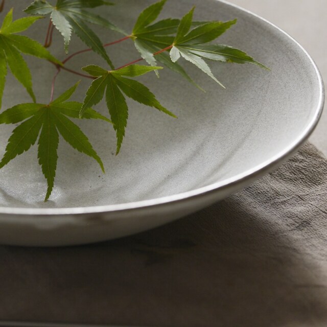 大野香織 8寸鉢 他にお目にかかることがない不思議な質感が魅力的な「あたら夜」シリーズ。使い勝手バグツンの浅鉢(大)はサラダ鉢のほかに汁気のあるメインディッシュにも◎ 今回おぼろ雲(グレー)タイプも入荷しています。シンプル故に飽きが来ないところが魅力ですよ。
