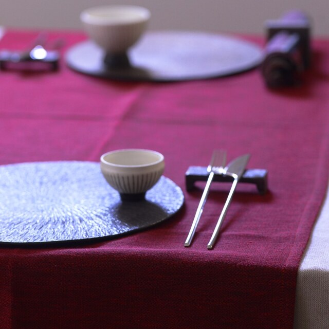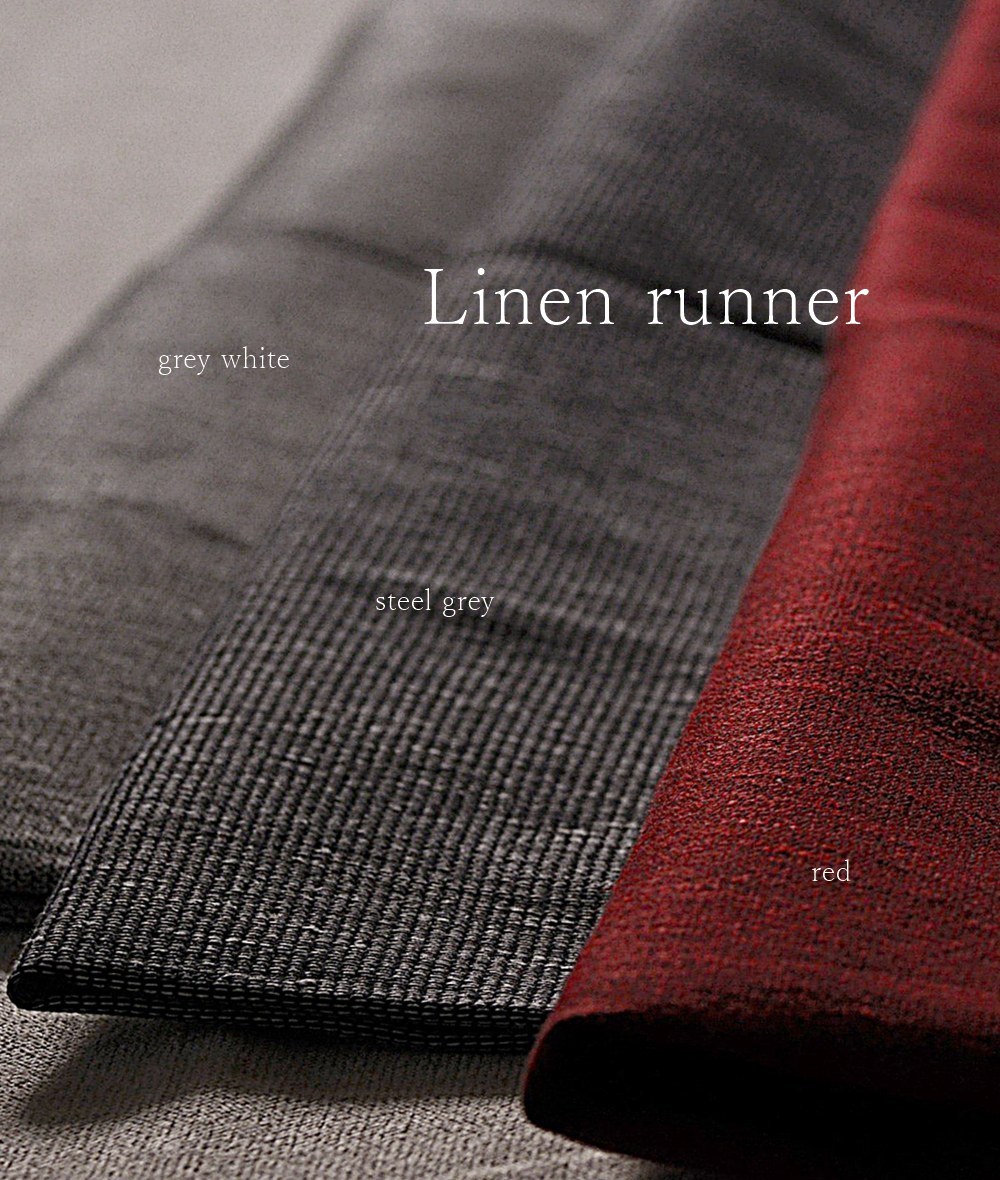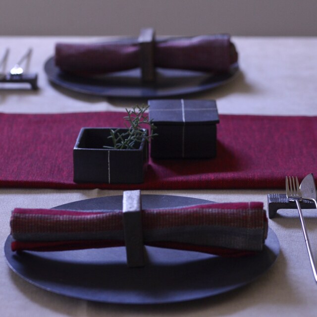 PISA DESIGN リネンランナー フィンランドの作家・Satuさんと出会ったのは、今年6月のインテリアライフスタイル展でした。会場で合流した陶芸家のにしだゆかさんが見つけ、「もう一度PISAさんのバッグを見に行きたい」と声をかけてくれたのがきっかけで、私も一緒にブースへ足を運びました。 Satuさんはデザイナーであると同時に、ご自身のアトリエで制作も行う作家さん。制作風景を拝見し、大量生産ではなく、一つひとつ丁寧な手仕事を大切にされていることが伝わってきました。アップサイクルの作品にも取り組まれており、感性だけでなく温かなお人柄も印象的でした。今回は、数ある作品の中からIVORYの器に合うアイテムをセレクトしています。二つ折りにして使う方法と、一枚で広げてブリッジランナーとして使う方法がご選択頂けます。さすが北欧リネンと思わせる、確かなクオリティ。今後はテーブルクロスなどの展開も考えています。※画像では赤色が多少明るめに映っておりますが実際には落ち着いたトーンの赤(ダークレッド)になります。ご注意くださいませ。