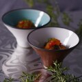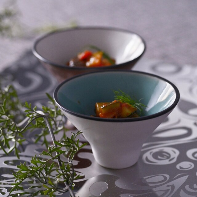 SAN&高台ボウル 小鉢としてもカップとしてもお使いいただけるおしゃれなボウルです。水を浮かべて短くなったお花を活けるのもおすすめ。ターコイズ色は夏の食卓に、朱(レンガ色)は秋の食卓にしっくり馴染みます。