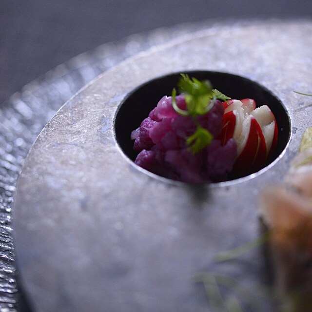 Cadenza 台皿 |SAN& TWFで発表されたこの個性的な台皿が、IVORYにもやってきました。ディップができるほどの深さをもつ、まぁるい窪みが特徴的な一枚です。最初に思い浮かんだのは、スタッフのtakakoさんが以前作ってくれて、とても美味しかった「ウフマヨ」。ここにソースを入れ、茹で卵をそっと落とした瞬間……ソースが溢れてしまいました(笑)。卵の大きさはかなり小さめにしたのですが(汗)。いろいろ試してみて、「これだ!」と思えるスタイリングが、きっと見つかるはず。そう信じて、これからもチャレンジし続けようと思います(少し大袈裟ですね)。こんなにも向上心を掻き立てられる台皿には、なかなか出会えません。ぜひ皆さまも、自由な発想でいろいろ試してみてください。ご報告、お待ちしています^^