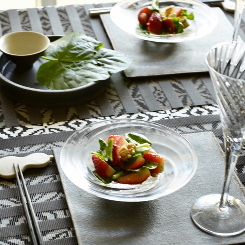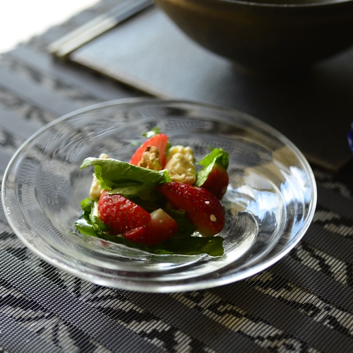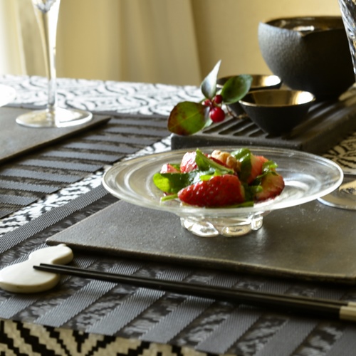 お上品なガラスの小皿は使い方に困っちゃう〜なんていう声を良く聞きますが、本当は簡単!陶製の平皿の上に透明のガラス小皿を載せてみて!!その世界観から載せるべき料理が浮かんできますよ。