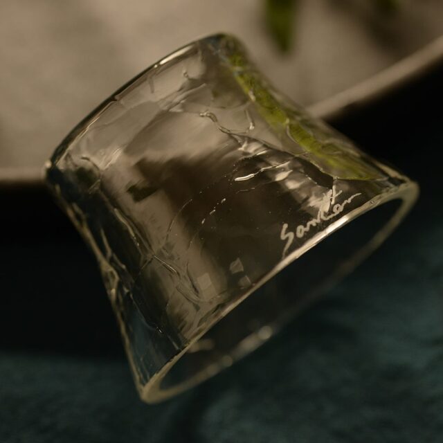 時にはお酒を。時にはデザートカップとして。時には花入れとして。カップを使わない時はリングにナプキンを通して。