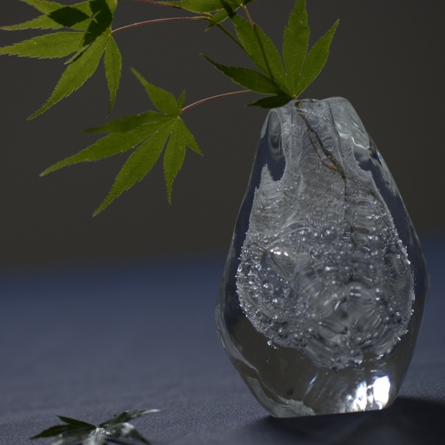 末國清吉 氷塊花器 氷の季節がやってきました!しかしこれは食べれませんし、溶けませんw クリアーな氷と気泡の入った氷があります。クリアーには点々の線が流れるように入ってます。天然石のような神秘的なフォルムも魅力です!