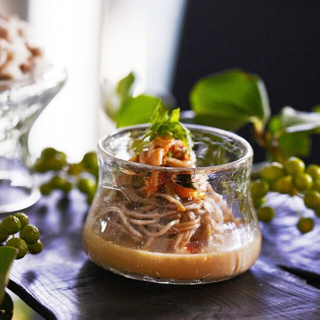 【末國清吉 鼓形小鉢】どちらが表でどちらが裏なのか、最初は迷ってしまったのですが、少し窪んだ方がお皿の“表”だと聞いてびっくり!そこから「この面、どう使えるかな?」とあれこれ想像してみたところ、思っていた以上に用途の幅広さに気づかされました。キャンドルスタンドとして使えば、抜け感があってとてもおしゃれ。逆さにして花器として使うのも素敵ですし、大皿を載せればコンポートの支柱にもなります。ひとつあるだけで、さまざまなシーンに活躍してくれる万能なうつわ。ぜひこの夏、お迎えいただきたい一品です。