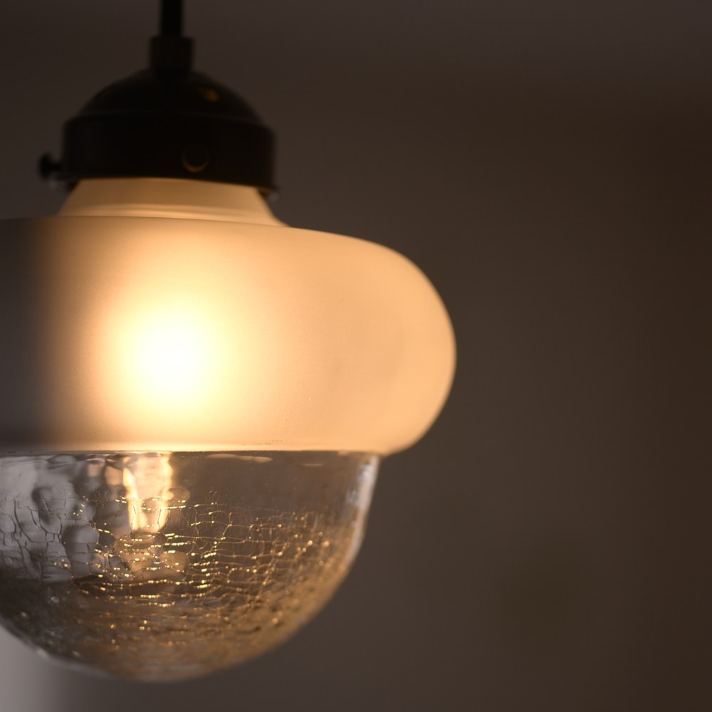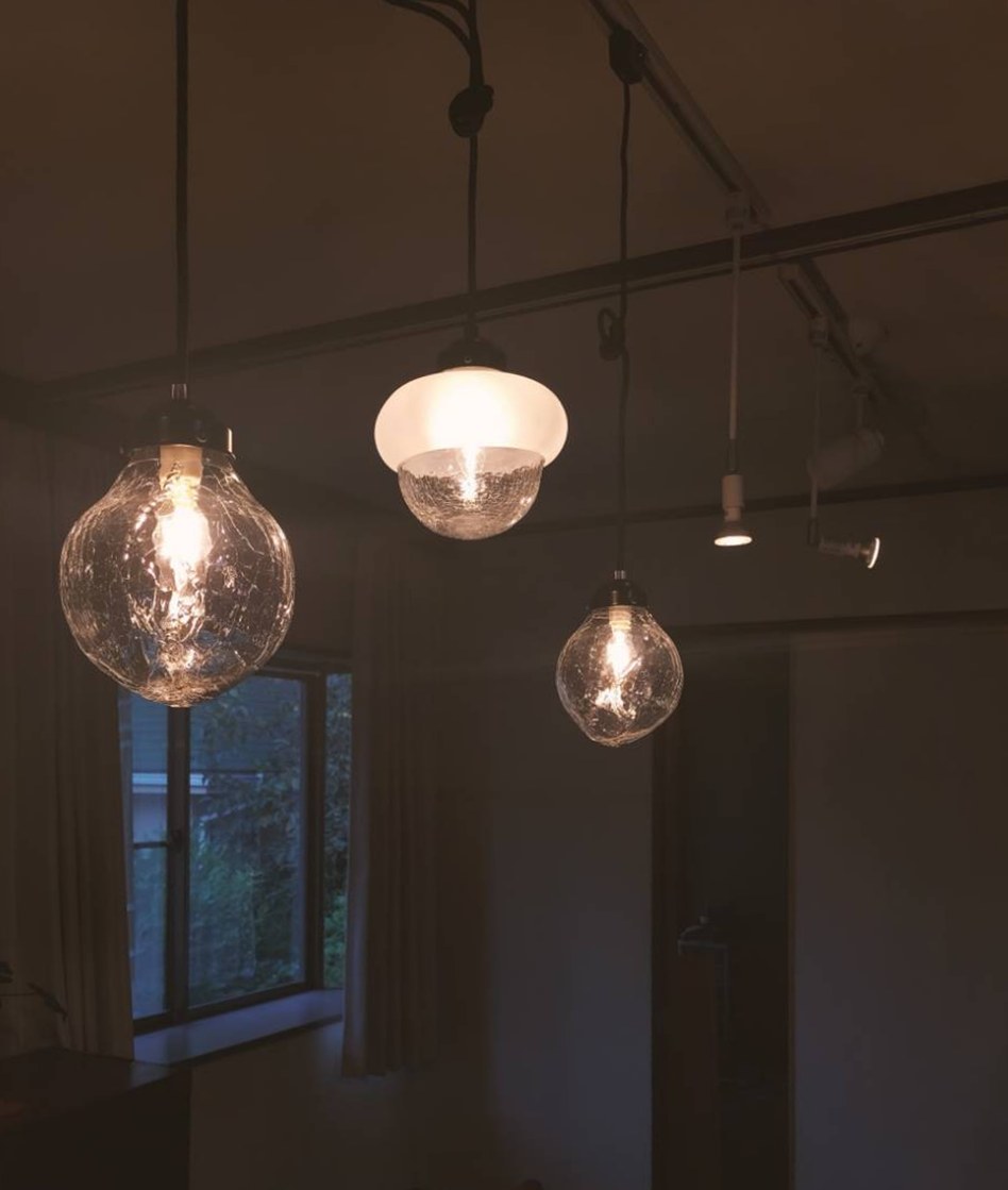 末國清吉 ペンダントライト 末國さんの工房ギャラリーにも、個性豊かな照明がたくさん設置されており、つい欲しくなってしまう魅力があります。 今回ご紹介するのは、家庭用にぴったりなコンパクトサイズの2点。コードはいずれも1mで、取り付けもとても簡単です。作品は、「氷塊」「どんぐり」の2種。作家もののペンダントライトをひとつ取り入れるだけで、お部屋の雰囲気がぐっと変わります。ぜひ、暮らしに迎えていただきたい逸品です。