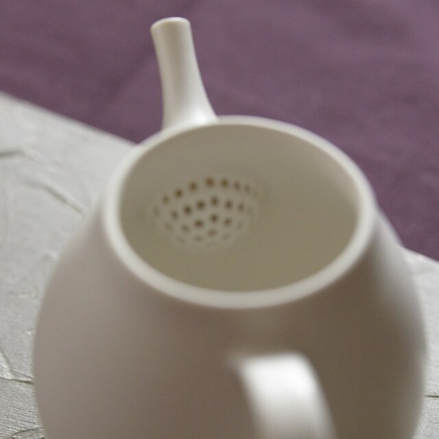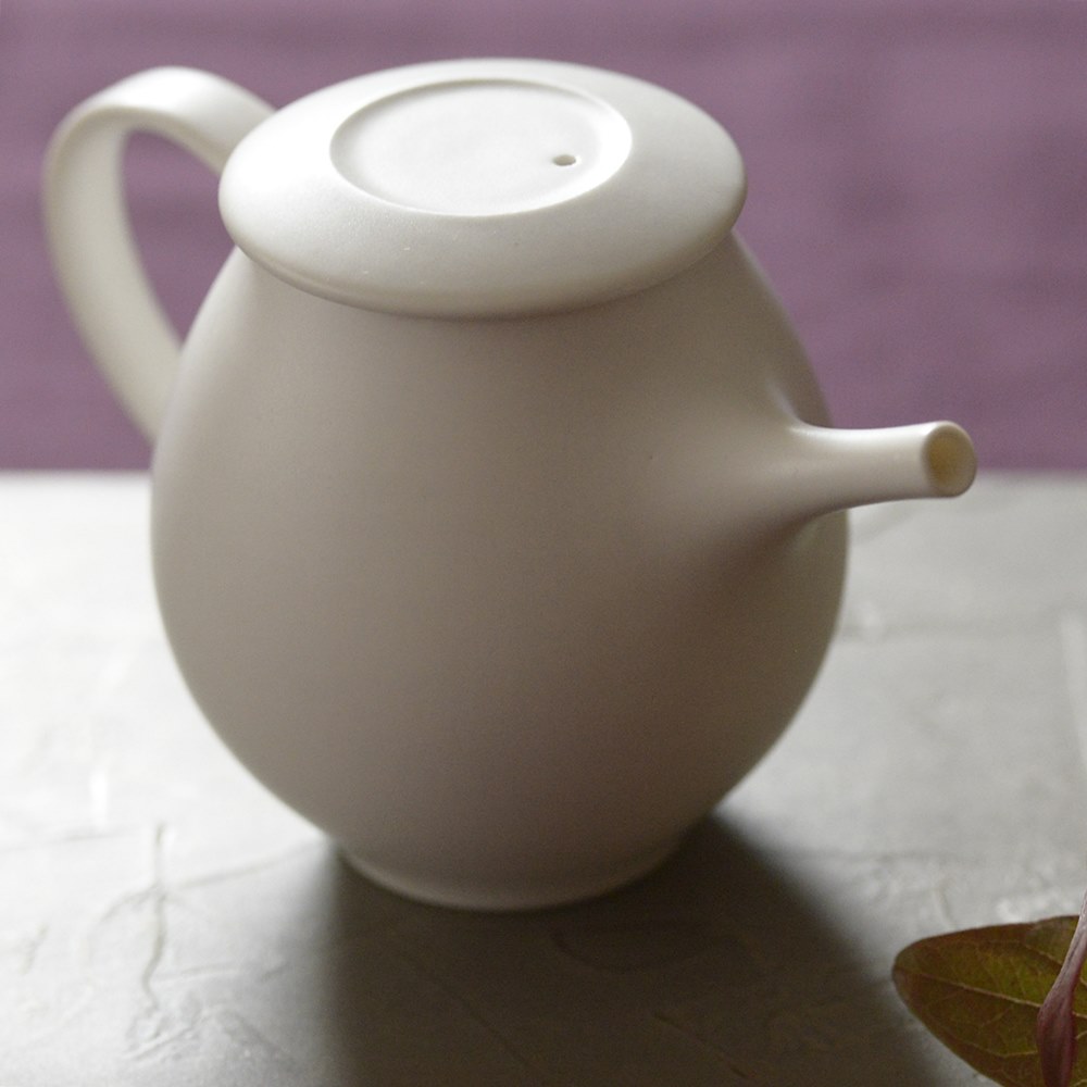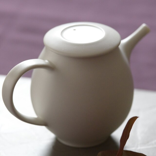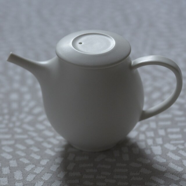 スエトシヒロ ホヤポットM 真っ白い磁器のポットは午前中に見せる表情と夕方とで違うから不思議です。午前中はピュアな色白美人ですが、夕方は色っぽく映るんです。その表情の違いも味わえるのが醍醐味です。丁寧に成形されたホヤポットは水切りも抜群です❣ 容量は約250mlです。