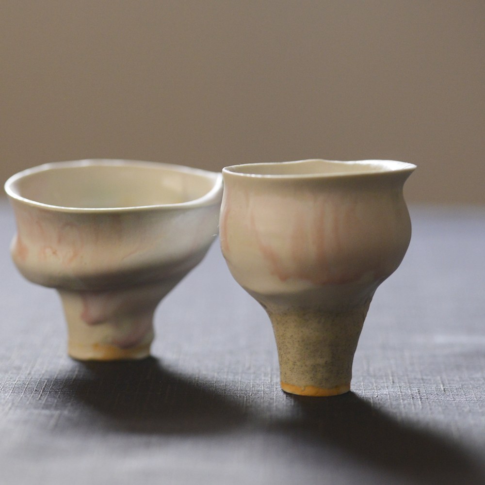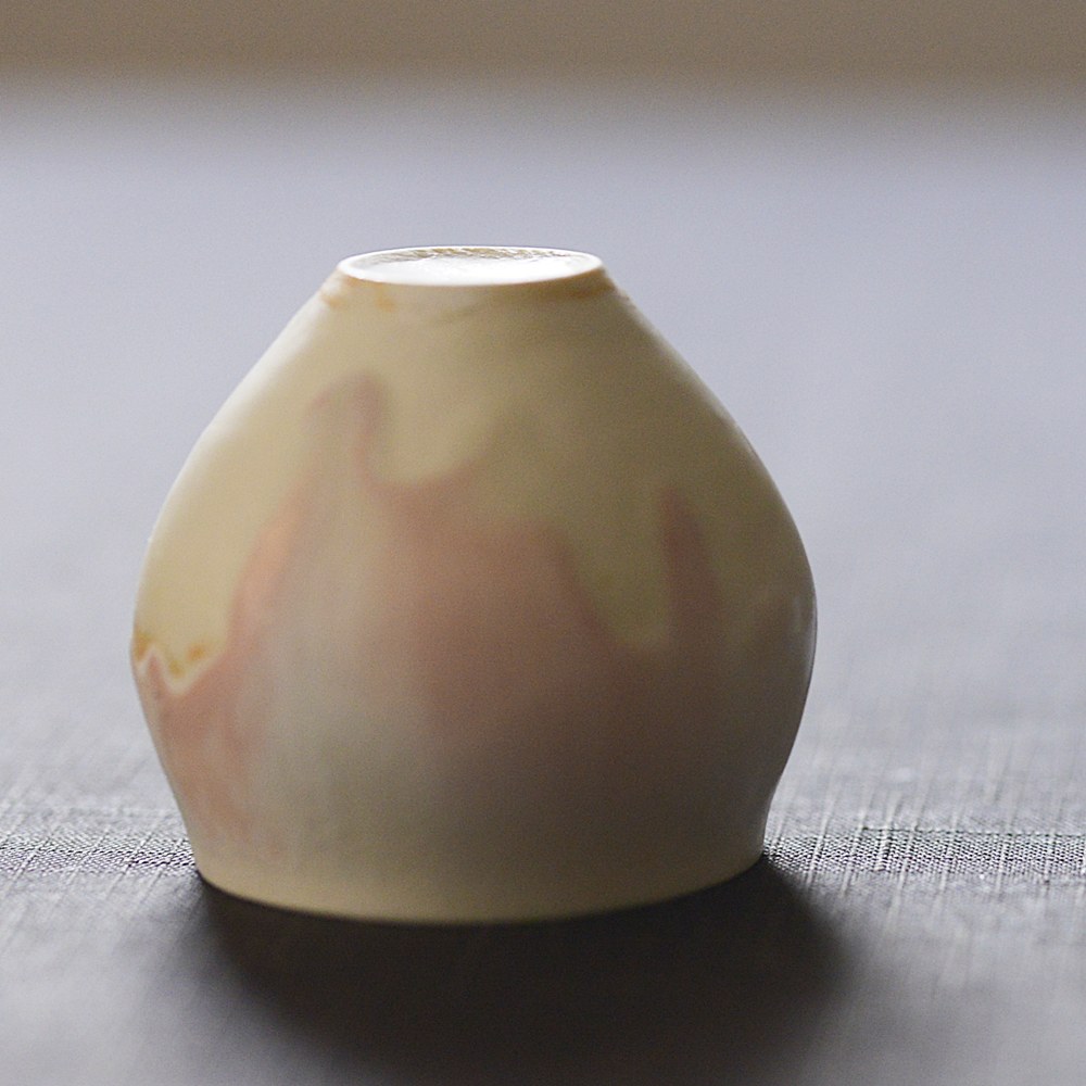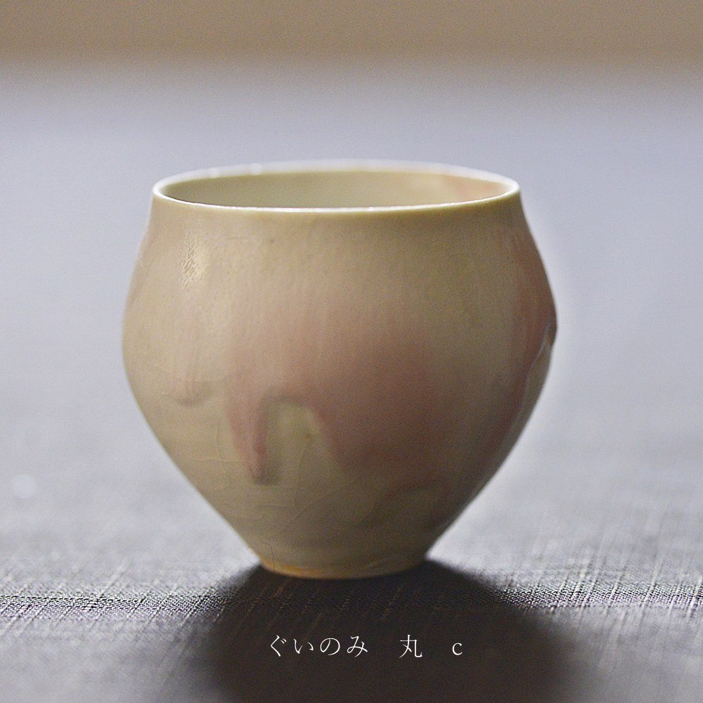 ピンクの釉薬の広がり方が柔らかさを出してくれる。ある意味、ぐい呑みっぽくない。 どのような場面で使うのかはまだ考え中だけど、テーブルに優しさと暖かさを与えてくれるに違いない。 あ、キャンドルの季節が待ち遠しい。そんな気持ちにさせてくれる作品。 |