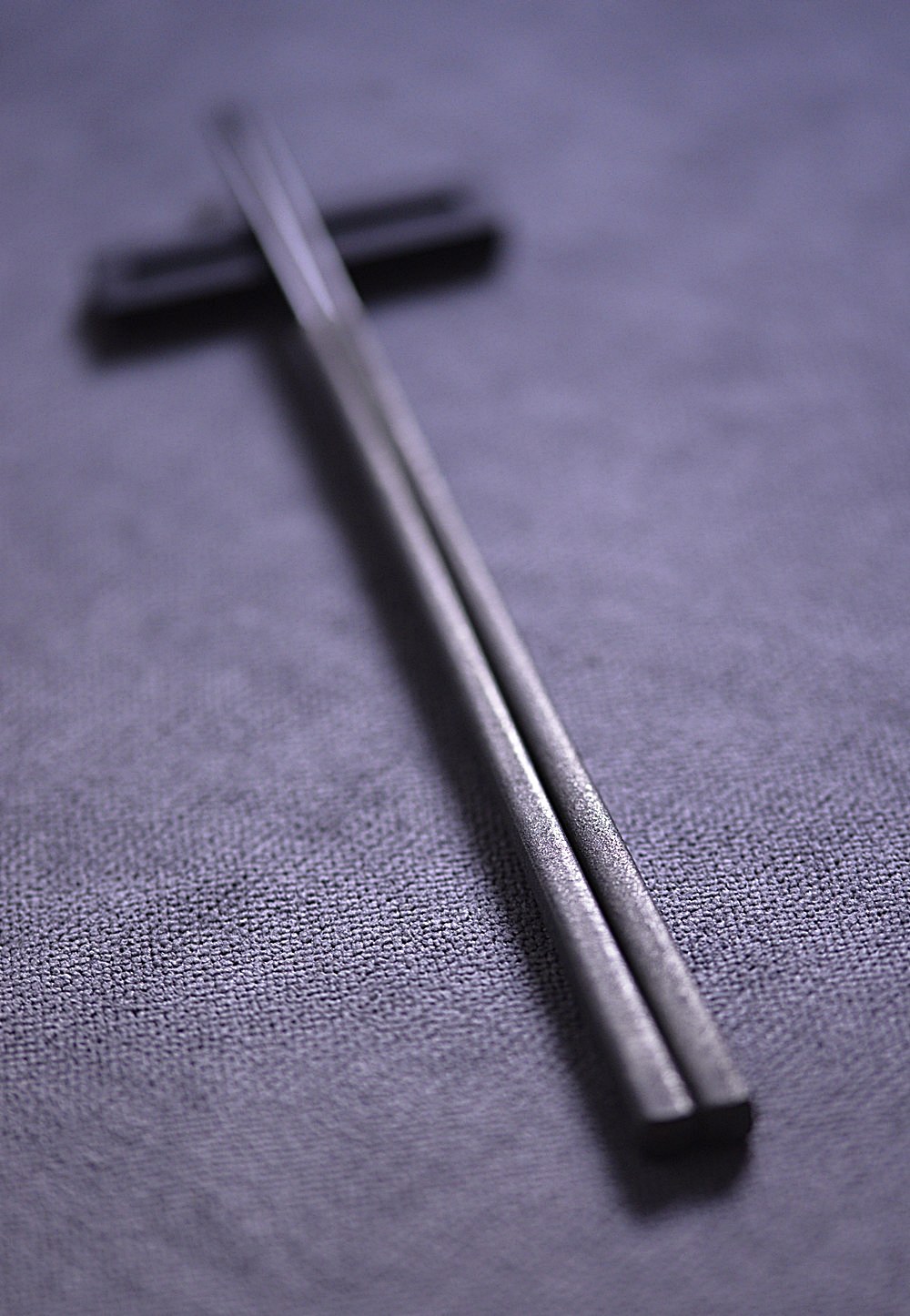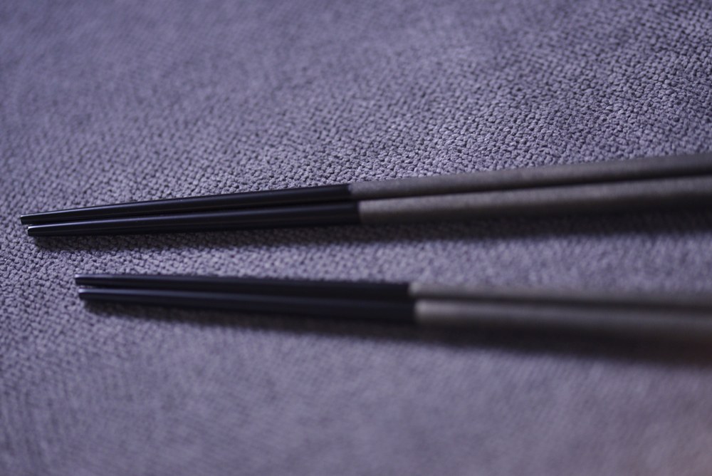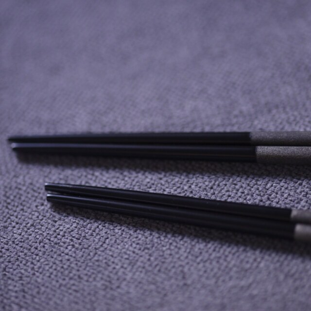 冨樫孝男 四分一塗 23cm箸 ホッソリとスレンダーな四角箸。先端約6cmは艶やかな黒塗りで、エレガントな雰囲気に仕上がっています。四分一の折敷やプレートと合わせてお使いいただくと、より一層スタイリッシュで洗練された食卓を演出できます。